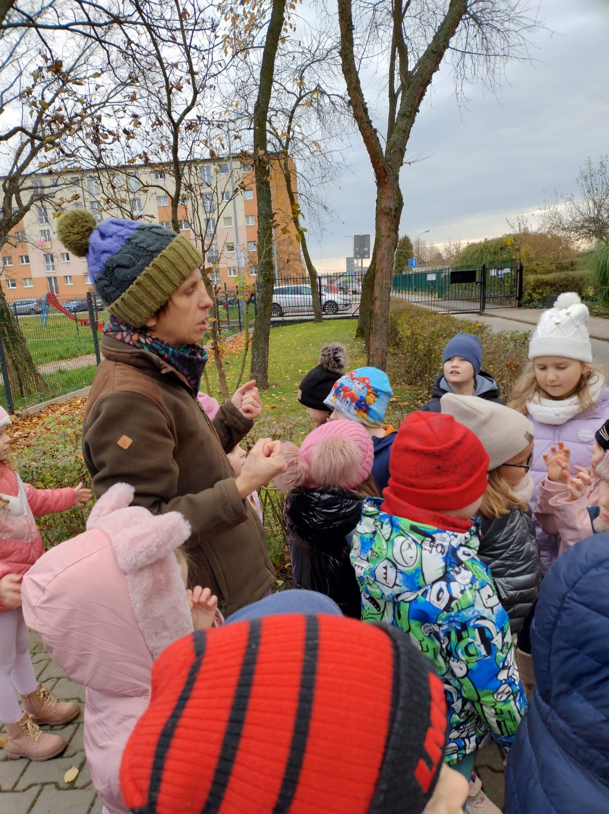 „Jesienne skarby” – na początku listopada dzieci z przedszkola wzięły udział w zajęciach w ramach edukacji przyrodniczej na świeżym powietrzu.
