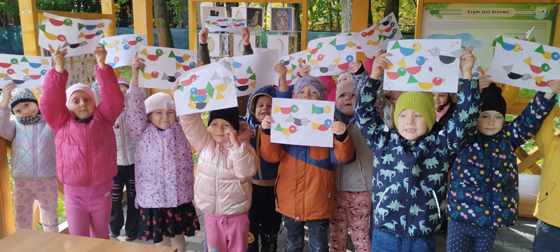 Podczas spotkania z edukatorem leśnym Nadleśnictwa Radomsko dzieci 6-letnie oddział V i VI uczestniczyły w zajęciach podsumowujących zdobytą wiedzę na temat drzew.