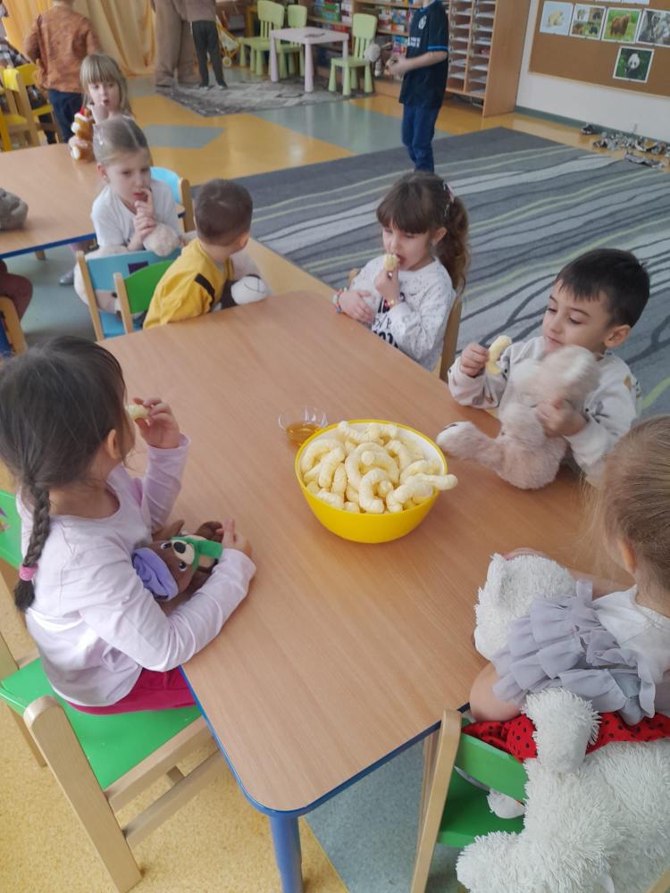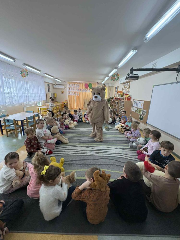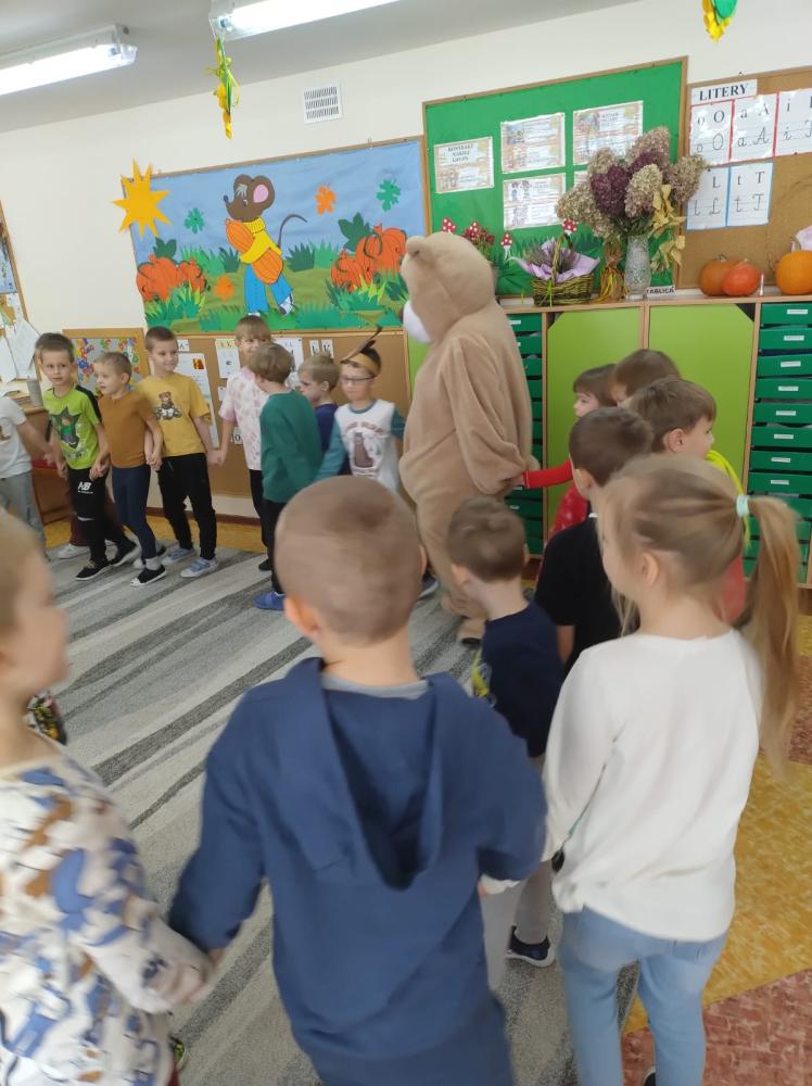 Największą niespodzianką okazała się wizyta wyjątkowego gościa — Najprawdziwszego Pluszowego Misia, który wywołał uśmiechy na twarzach wszystkich przedszkolaków i wprowadził jeszcze więcej ciepła w to wyjątkowe święto.