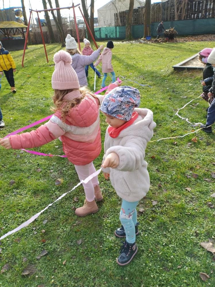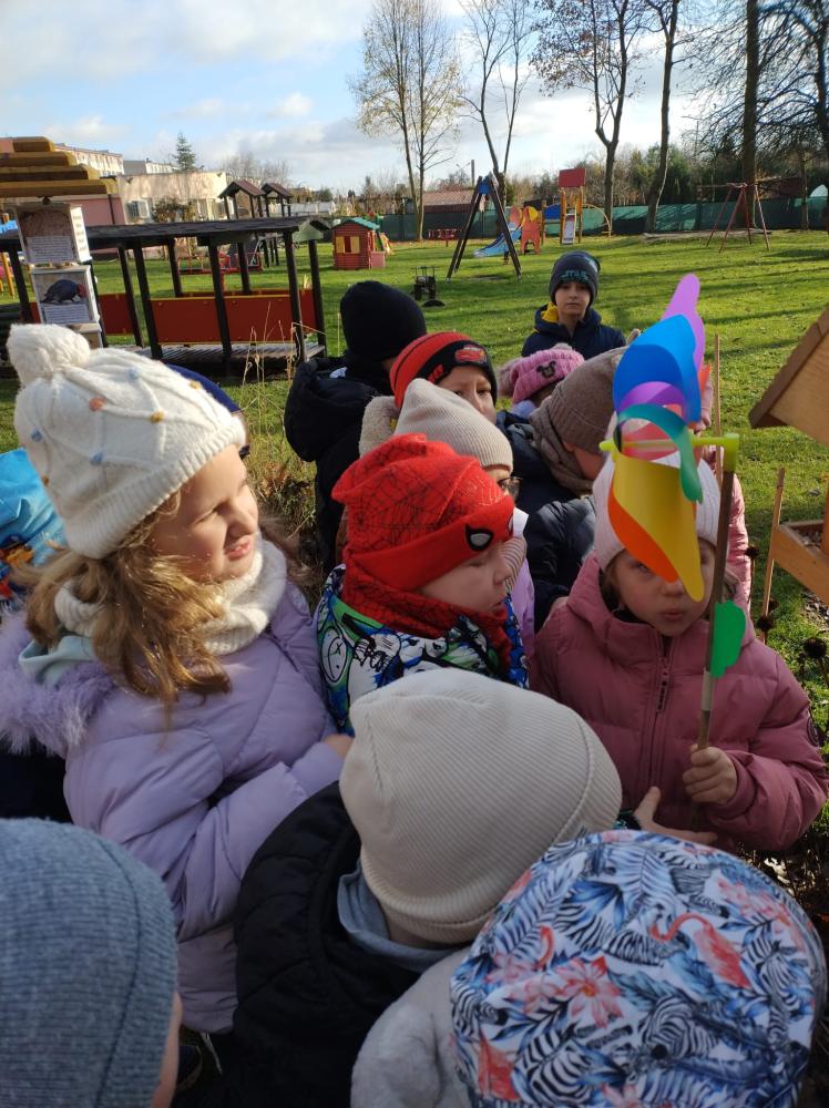 Przedszkolaki określały kierunek, z którego wieje wiatr, jego prędkość na podstawie własnych obserwacji.