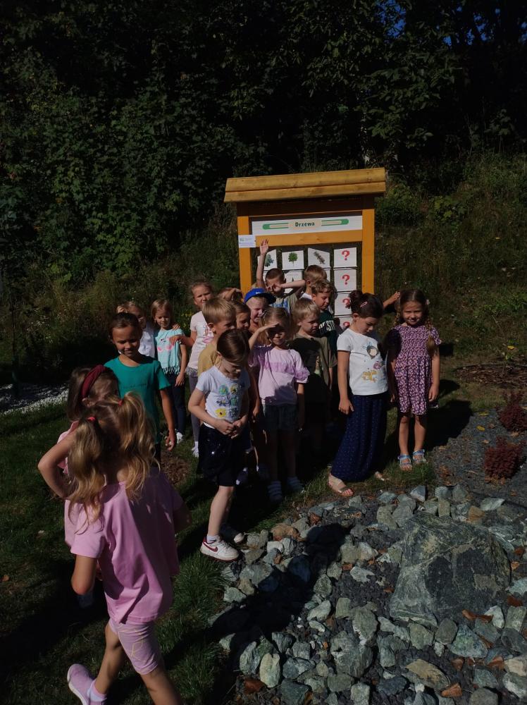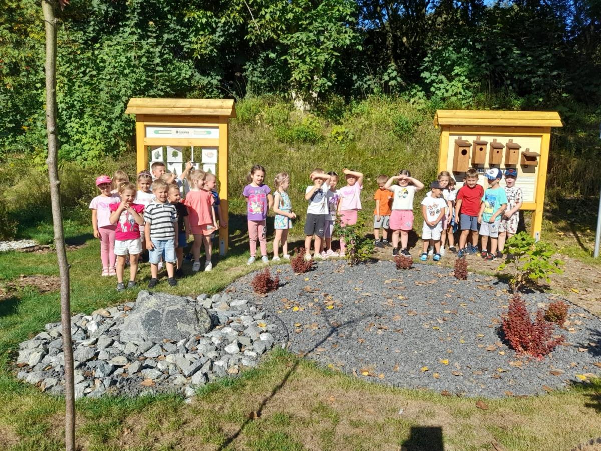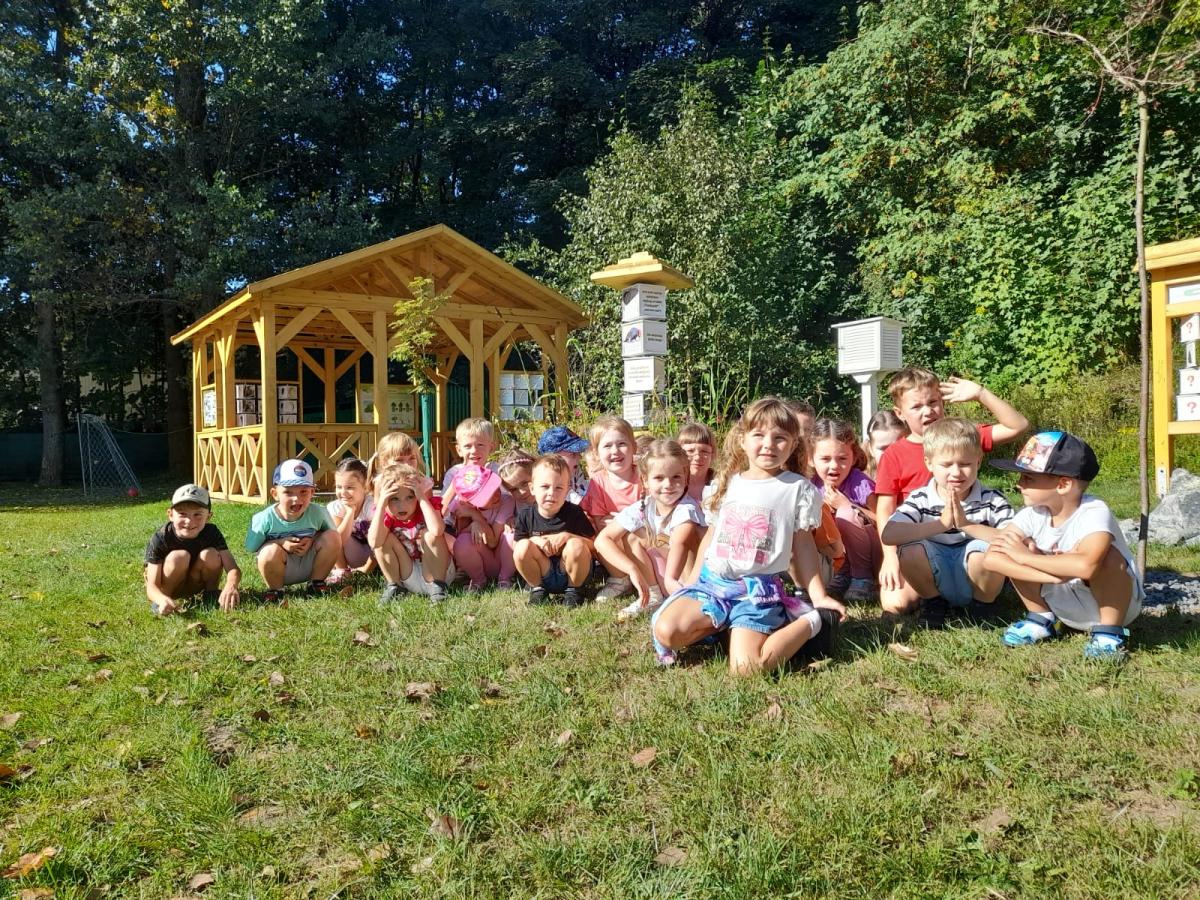 Na początku września wszystkie grupy przedszkolne w ramach edukacji przyrodniczej odbyły spacer naszą nową ścieżką dydaktyczną, zwiedzając jej poszczególne strefy.