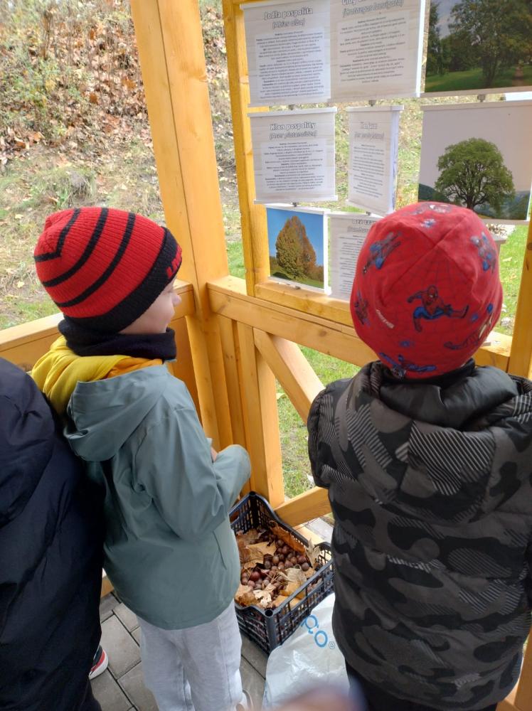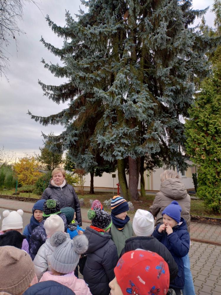 Dzieci rozpoznawały i nazywały drzewa znajdujące się w punkcie dydaktycznym jak również na terenie przedszkola.