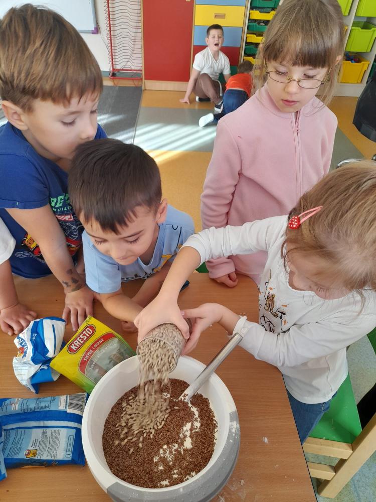 W dniu 07.11.2025r.( piątek) dzieci 5- letnie z grupy Pszczółek Publicznego Przedszkola nr 1 przygotowywały na śniadanie kanapki pełne zdrowia.