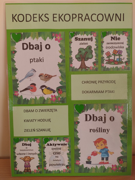 W ramach zadania z dziedziny Edukacja Ekologiczna program Nasze Ekologiczne Pracownie w Publicznym Przedszkolu nr 1 im. Jana Brzechwy w Radomsku został opracowany Kodeks ekopracowni.