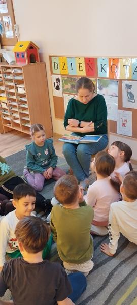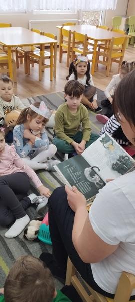 Dzieci z ogromnym zainteresowaniem słuchały czytanych historii oraz chętnie dzieliły się swoimi spostrzeżeniami.