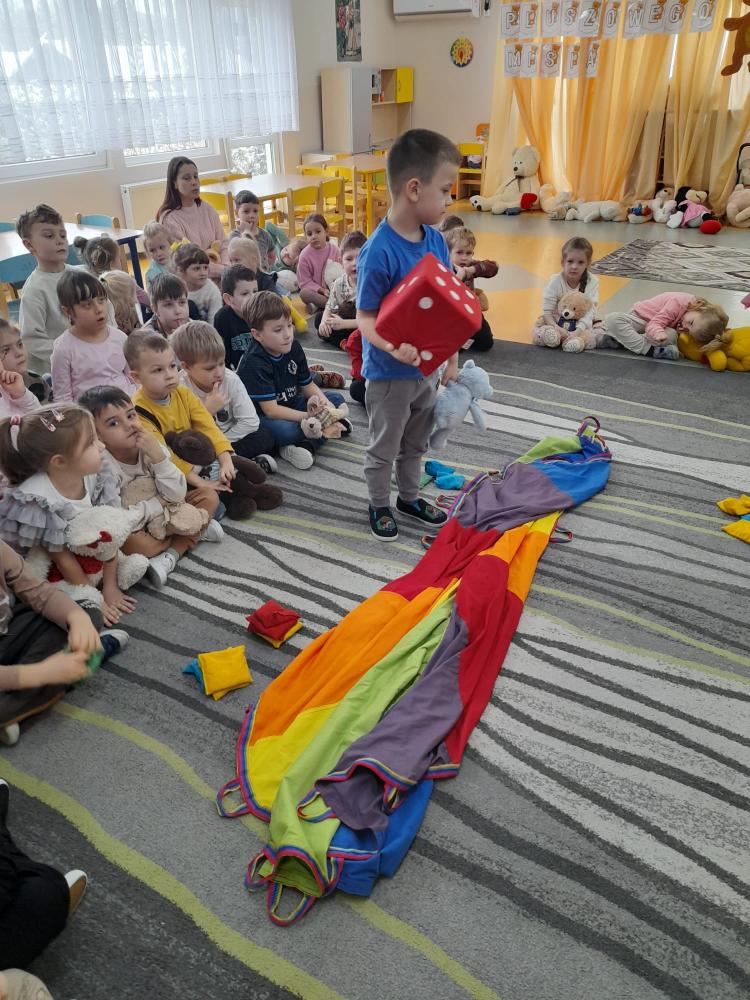 W przedszkolnych salach panowała radosna atmosfera, a zabaw i atrakcji było co niemiara — od wspólnych tańców, przez misiowe konkursy, aż po kreatywne zabawy plastyczne.