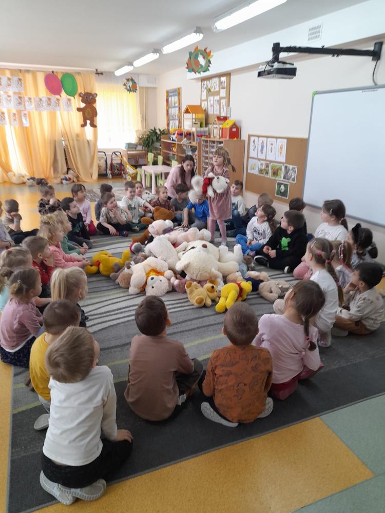 Największą niespodzianką okazała się wizyta wyjątkowego gościa — Najprawdziwszego Pluszowego Misia, który wywołał uśmiechy na twarzach wszystkich przedszkolaków i wprowadził jeszcze więcej ciepła w to wyjątkowe święto.