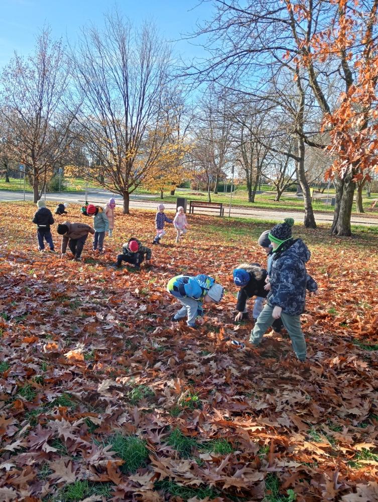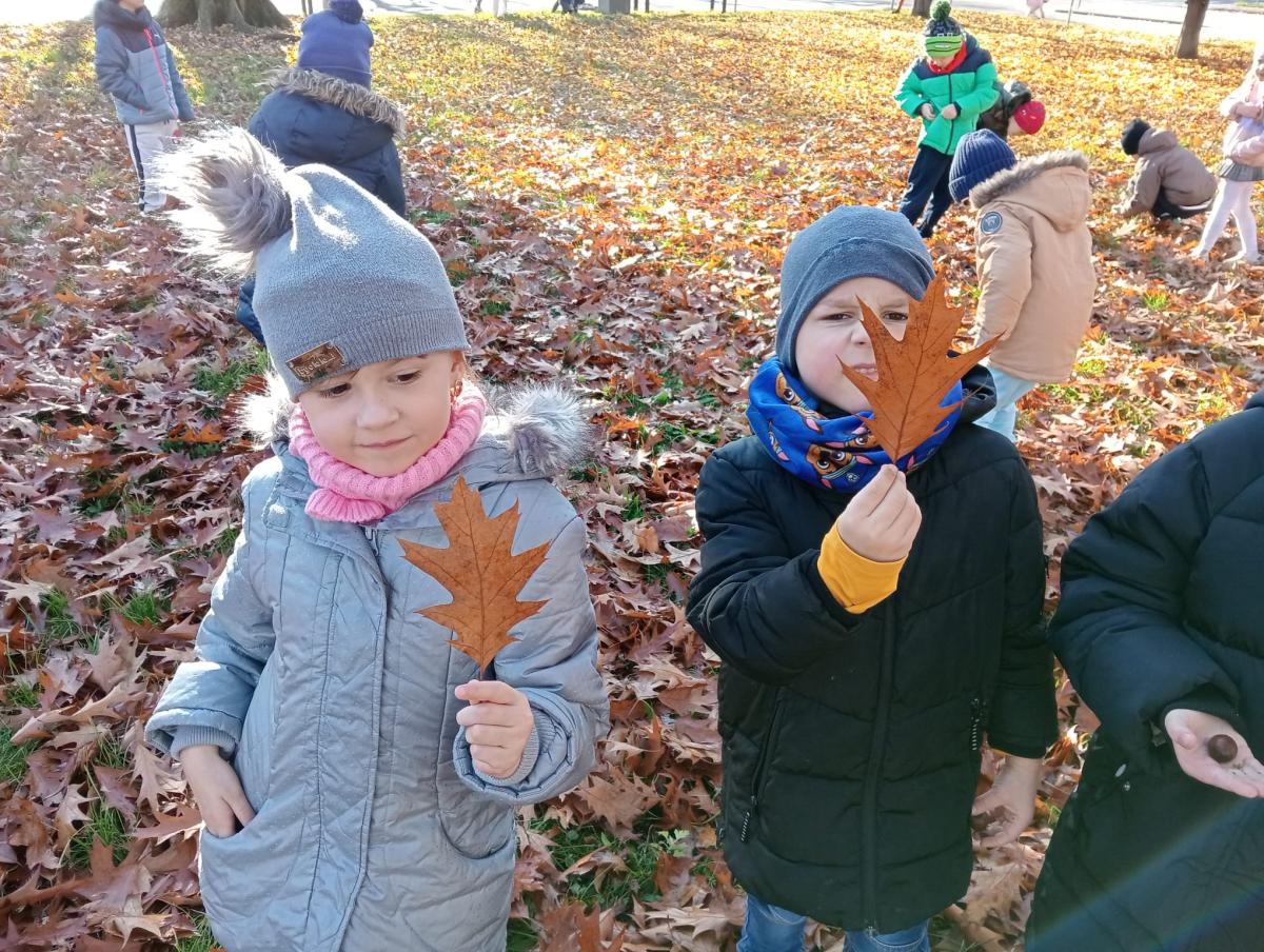 „Jesienne skarby” – na początku listopada dzieci z przedszkola wzięły udział w zajęciach w ramach edukacji przyrodniczej na świeżym powietrzu.