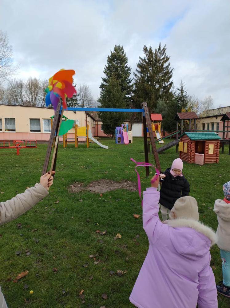 Przedszkolaki określały kierunek, z którego wieje wiatr, jego prędkość na podstawie własnych obserwacji.