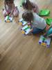 Przedszkolaki pod czujnym okiem nauczycielek ze szkoły brały udział w zabawach z kodowaniem, układały różnego rodzaju piramidy, przechodziły zakodowaną ścieżką, programowały kodowaną biedronkę, układały z klocków zakodowane krokusy, układały misie według pewnego kodu.