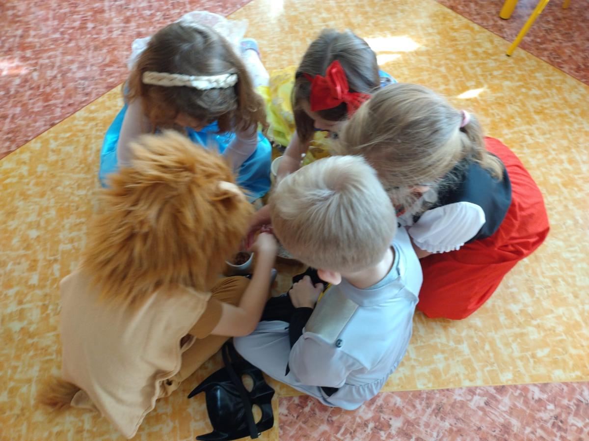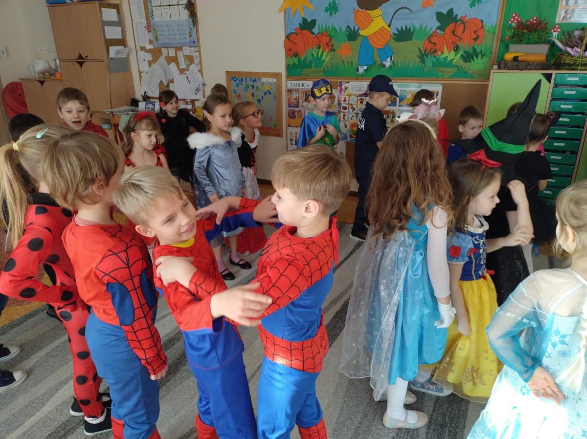 Dzieci przyszły przebrane za swoich ulubionych bohaterów bajkowych i z entuzjazmem uczestniczyły w tańcach oraz zabawach przy znanych melodiach z bajek. Dzieci doskonaliły koordynację ruchową, poczucie rytmu oraz współpracę w grupie. Świetnie wykonywały wszystkie zadania. Zajęcia przebiegały w radosnej, bajkowej atmosferze, dostarczając dzieciom wielu pozytywnych emocji.