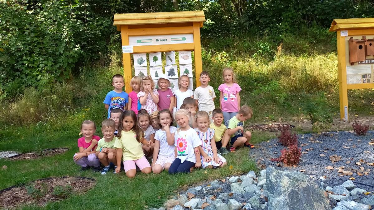 Na początku września wszystkie grupy przedszkolne w ramach edukacji przyrodniczej odbyły spacer naszą nową ścieżką dydaktyczną, zwiedzając jej poszczególne strefy.