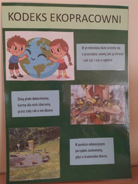 W ramach zadania z dziedziny Edukacja Ekologiczna program Nasze Ekologiczne Pracownie w Publicznym Przedszkolu nr 1 im. Jana Brzechwy w Radomsku został opracowany Kodeks ekopracowni.