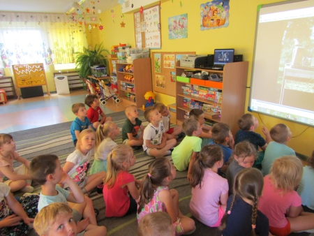 Dzieci 4, 5 i 6-letnie uczestniczyły w multimedialnej prezentacji dotyczącej zagrożeń ze strony człowieka dla środowiska przyrodniczego.