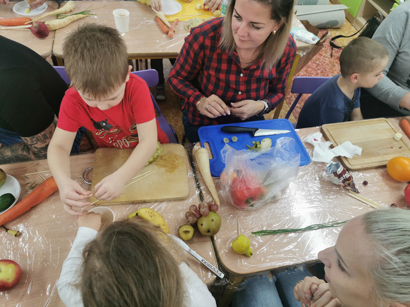 Jednak najważniejszym punktem wspólnego spotkania było stworzenie przez dzieci i rodziców cudaków z owoców i warzyw.