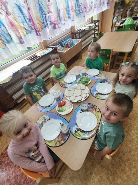 Przedszkolaki z tej okazji samodzielnie przygotowywały zdrowe, kolorowe kanapki.