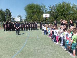 24 maj 2016 roku dzieci z grupy V i VI odwiedziły Zespół Szkół Ponadgimnazjalnych nr 1 im. Stanisława Staszica w Radomsku, gdzie odbyło się podsumowanie projektu profilaktycznego „Mundurowe przedszkolaki”, realizowanego w roku szkolnym 2015/2016 w naszym przedszkolu przez klasy mundurowe tej szkoły.
