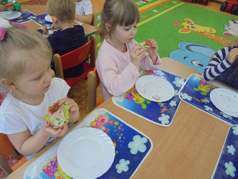 W miesiącu kwietniu dzieci z grupy „Słoneczka” uczyły się jak komponować zdrowe posiłki. Pamiętając o tym, że warzywa i owoce to źródło witamin 3- latki chętnie wykonywały kolorowe, wiosenne kanapki, które z przyjemnością zjadły.