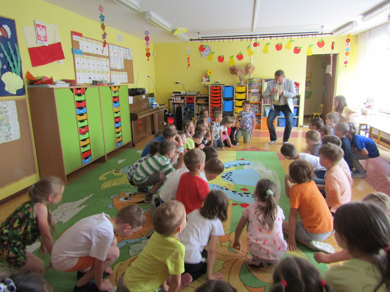 Zabawy muzyczno – ruchowe poprowadził Pan Marcin Jóźwik i „Podróżująca filharmonia.