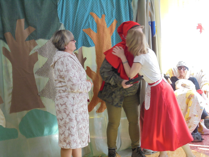 spektakl teatralny ,,Czerwony Kapturek”, w którym wszystkie role zagrały nauczycielki z naszej placówki.