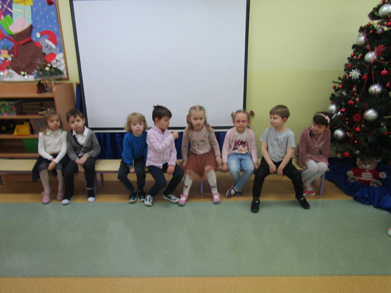 W  dniu 13.01.2022 ( czwartek) o godzinie 15.30 w grupie III  „Motylki” odbyła się uroczystość  o charakterze rodzinnym p. t. „ Stała pod śniegiem panna zielona” wiersze pod choinkę ze śpiewem kolęd.  Na spotkanie, z zachowaniem reżimu sanitarnego ( dezynfekcja, maseczki, dystans), zaproszono  jednego z rodziców- mamę lub tatę. Główną część uroczystości stanowił montaż słowno- muzyczny w wykonaniu dzieci. Mali artyści zaprezentowali wiersze o tematyce świątecznej i noworocznej , śpiewali piosenki, kolędy. Podsumowaniem tej części były życzenia na Nowy Rok 2022 . Następnie  dzieci wręczyły rodzicom własnoręcznie wykonane upominki- aniołki i wszyscy udali się na słodki poczęstunek. Uroczystość odbyła się w bardzo miłej, jeszcze świątecznej  atmosferze, a nasi wychowankowie zaprezentowali się tak, jak na prawdziwych aktorów przystało.