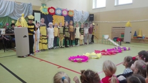 Dzieci z ogromnym zainteresowaniem obejrzały spektakl przygotowany przez uczniów drugiej klasy Szkoły Podstawowej. Interesująca dekoracja, różnobarwne przebrania, a przede wszystkim ciekawostki z życia pszczół zaprezentowane w bardzo przystępny sposób, wzbudziły wśród naszych wychowanków podziw i uznanie.