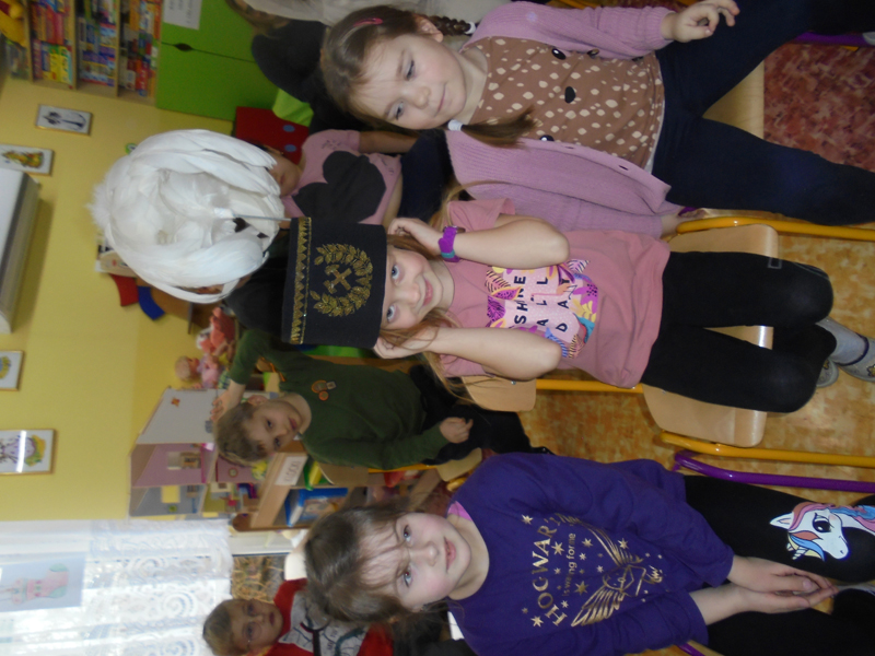 Podczas spotkania dzieci miały okazję zobaczyć odświętny strój górnika, dowiedziały się również wielu ciekawych rzeczy na temat trudnej i niebezpiecznej pracy górnika.