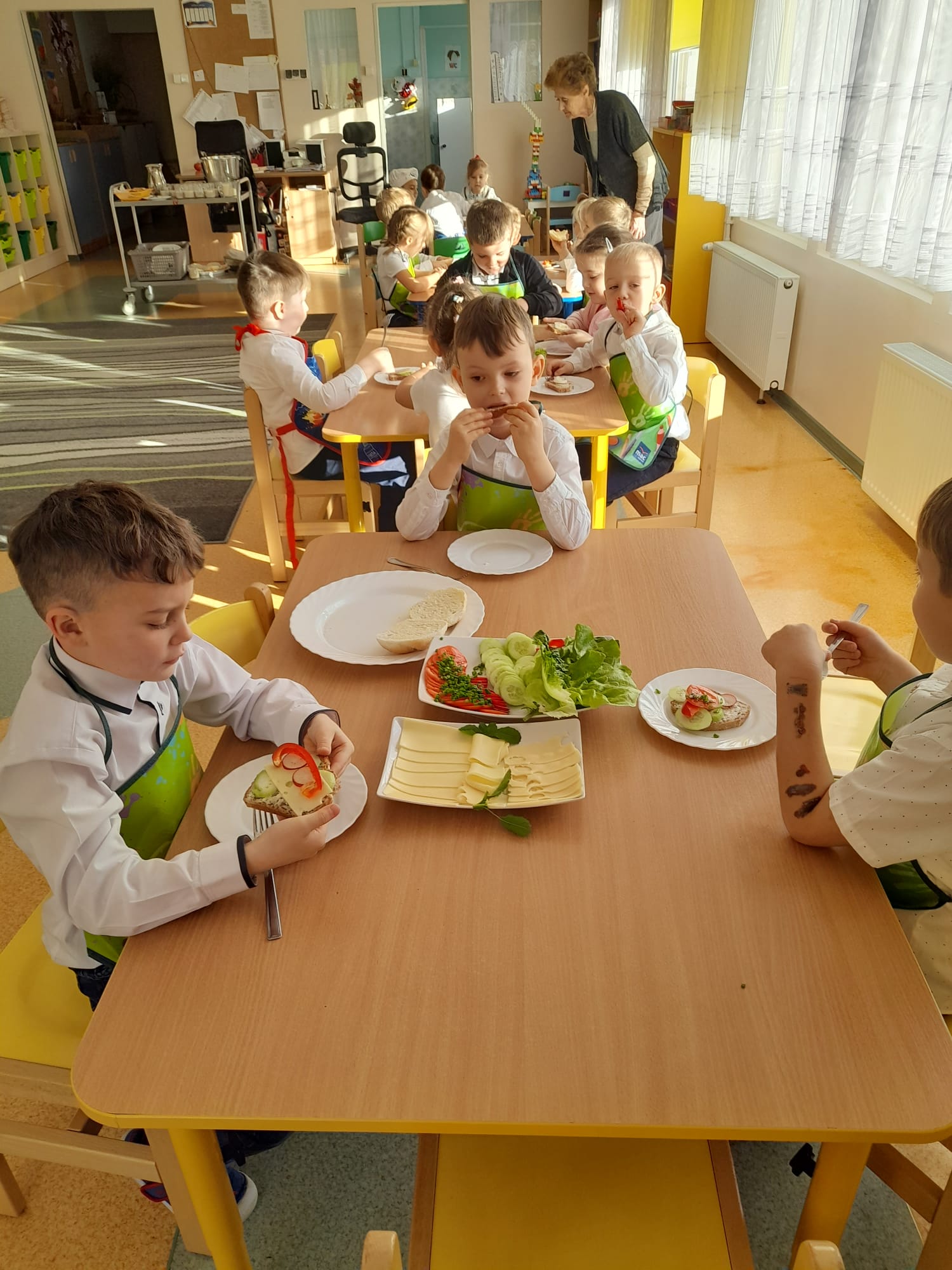 W dniu 07.11.2025r.( piątek) dzieci 5- letnie z grupy Pszczółek Publicznego Przedszkola nr 1 przygotowywały na śniadanie kanapki pełne zdrowia.